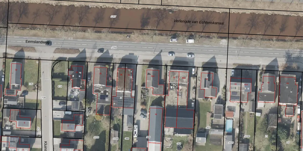 Het perceel waarop Eemslandweg 38-A staat heeft een oppervlakte van 1410 m². Dit is een zeer groot perceel. De perceeloppervlakte wordt geregistreerd door het Kadaster. Gedetailleerde informatie over de maten van dit perceel kunt u vinden in het rapport Kadastrale kaart met maatvoering van Eemslandweg 38-A.