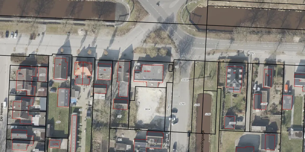Eemslandweg 88-A is gelegen op kadastraal perceel EMN00M3013. Deze kadastrale aanduiding is uniek en wordt gebruikt door het Kadaster om eigendomsrechten en andere zakelijke rechten vast te leggen. Het perceel maakt onderdeel uit van de kadastrale gemeente Emmen.