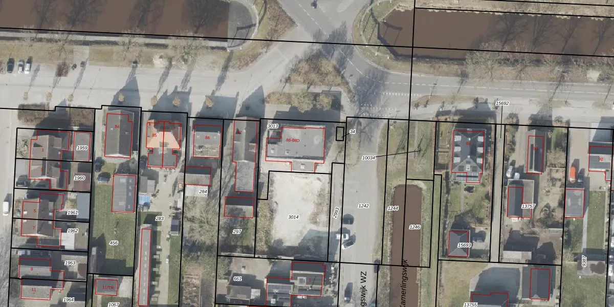 Eemslandweg 88-B is gelegen op kadastraal perceel EMN00M3013. Deze kadastrale aanduiding is uniek en wordt gebruikt door het Kadaster om eigendomsrechten en andere zakelijke rechten vast te leggen. Het perceel maakt onderdeel uit van de kadastrale gemeente Emmen.