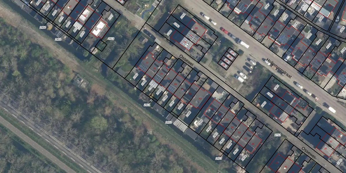 Het perceel waarop Ossewei 69 staat heeft een oppervlakte van 145 m². Dit is een middelgroot perceel. De perceeloppervlakte wordt geregistreerd door het Kadaster. Gedetailleerde informatie over de maten van dit perceel kunt u vinden in het rapport Kadastrale kaart met maatvoering van Ossewei 69.