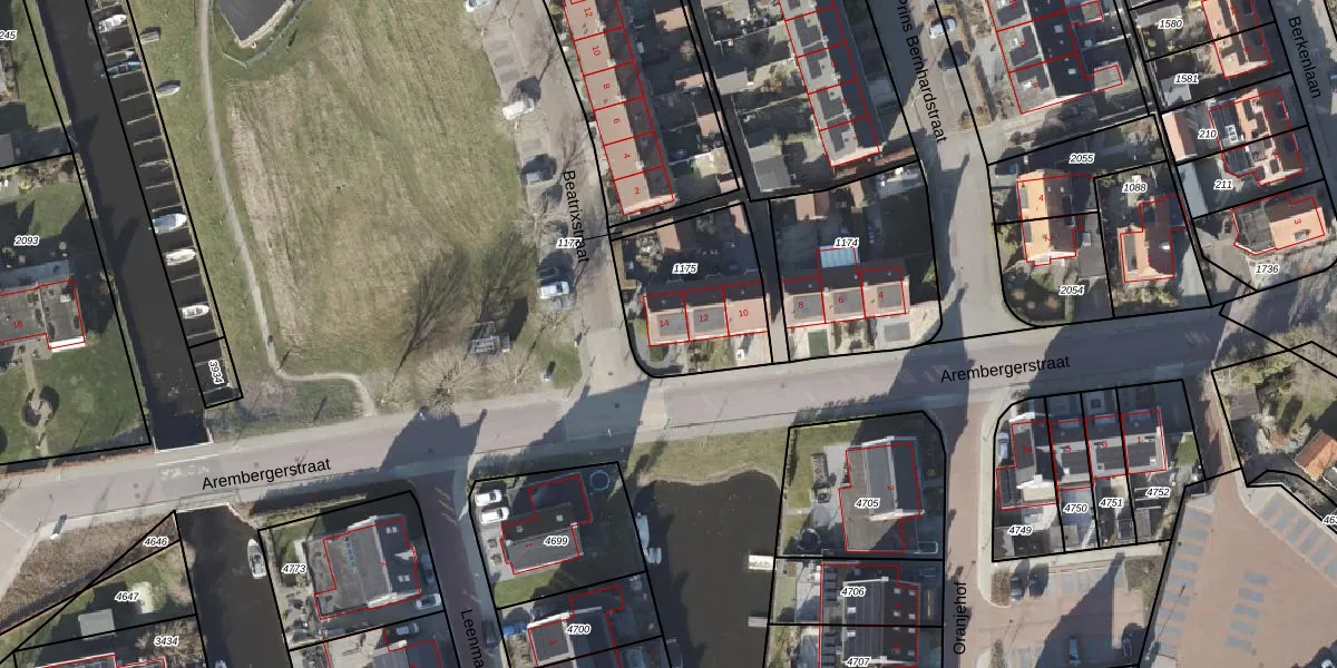Arembergerstraat 14 is gelegen op kadastraal perceel ZSS00D1175. Deze kadastrale aanduiding is uniek en wordt gebruikt door het Kadaster om eigendomsrechten en andere zakelijke rechten vast te leggen. Het perceel maakt onderdeel uit van de kadastrale gemeente Zwartsluis.