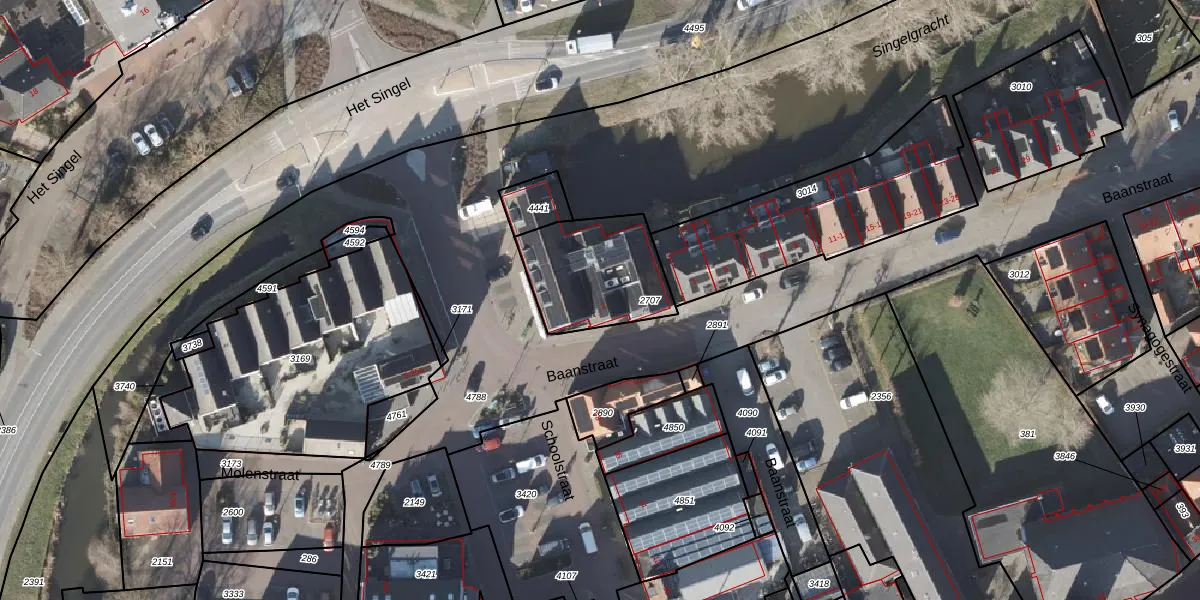 Het perceel waarop Baanstraat 1 staat heeft een oppervlakte van 394 m². Dit is een groot perceel. De perceeloppervlakte wordt geregistreerd door het Kadaster. Gedetailleerde informatie over de maten van dit perceel kunt u vinden in het rapport Kadastrale kaart met maatvoering van Baanstraat 1.