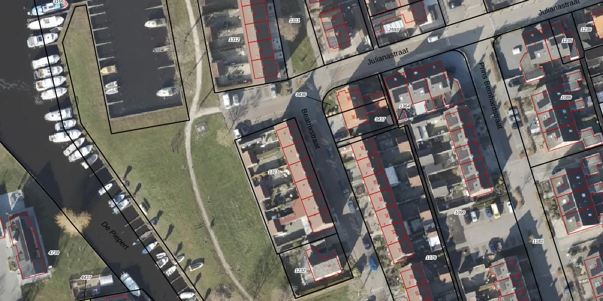 Het perceel waarop Beatrixstraat 13 staat heeft een oppervlakte van 875 m². Dit is een groot perceel. De perceeloppervlakte wordt geregistreerd door het Kadaster. Gedetailleerde informatie over de maten van dit perceel kunt u vinden in het rapport Kadastrale kaart met maatvoering van Beatrixstraat 13.