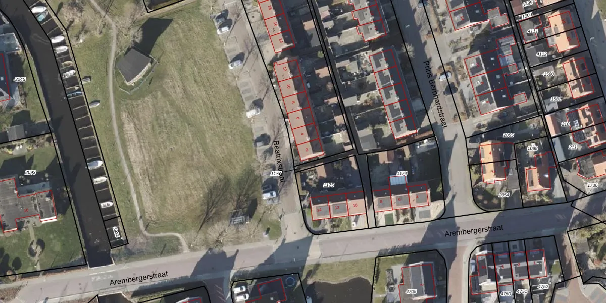 Het perceel waarop Beatrixstraat 2 staat heeft een oppervlakte van 2240 m². Dit is een zeer groot perceel. De perceeloppervlakte wordt geregistreerd door het Kadaster. Gedetailleerde informatie over de maten van dit perceel kunt u vinden in het rapport Kadastrale kaart met maatvoering van Beatrixstraat 2.