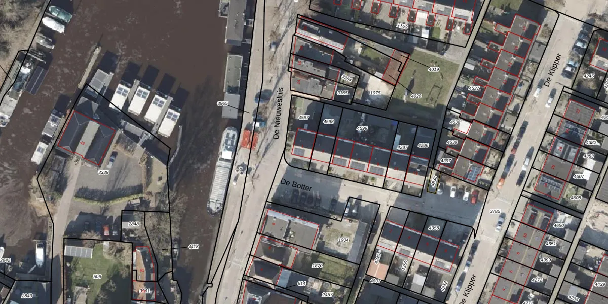 De Botter 1 is gelegen op kadastraal perceel ZSS00D4597. Deze kadastrale aanduiding is uniek en wordt gebruikt door het Kadaster om eigendomsrechten en andere zakelijke rechten vast te leggen. Het perceel maakt onderdeel uit van de kadastrale gemeente Zwartsluis.