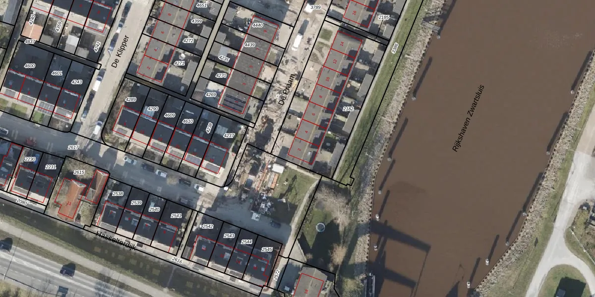 Het adres ligt op het perceel ZSS00-D-2182, dat zich in de kadastrale gemeente Zwartsluis bevindt. Het perceel is kleiner dan gemiddeld in Zwartsluis. Het perceel is 1092 m² groot, terwijl het gemiddelde ligt op 5578,77 m². Het grootste perceel in de kadastrale gemeente is 47,2 ha. Het kleinste perceel heeft een oppervlakte van 0 m². Er zijn 7 adressen aanwezig op het perceel. De laatste wijziging in het de Basisregistratie Kadaster (BRK) was op 14-05-2002.