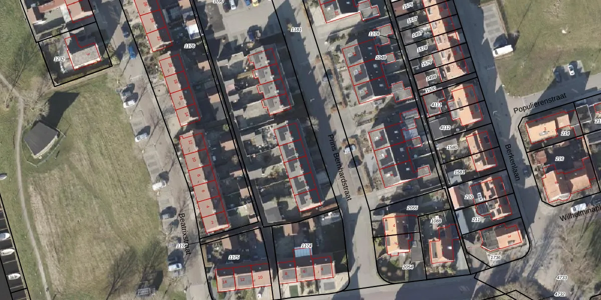Het perceel waarop Prins Bernhardstraat 7 staat heeft een oppervlakte van 3353 m². Dit is een zeer groot perceel. De perceeloppervlakte wordt geregistreerd door het Kadaster. Gedetailleerde informatie over de maten van dit perceel kunt u vinden in het rapport Kadastrale kaart met maatvoering van Prins Bernhardstraat 7.