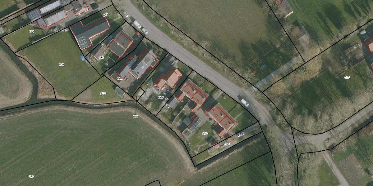 Het perceel waarop het adres ligt is RIE00-F-649. De afkorting 'RIE00' staat voor kadastrale gemeente Ried. Het perceel is kleiner dan gemiddeld in Ried. Het perceel is 1290 m² groot, terwijl het gemiddelde ligt op 1,2 ha. Het grootste perceel in de kadastrale gemeente is 32,1 ha. Het kleinste perceel heeft een oppervlakte van 3 m². Op het perceel liggen in totaal 4 adressen. De huidige grenzen van het perceel zijn digitaal in de Basisregistratie Kadaster (BRK) geregistreerd op 15-01-1998.