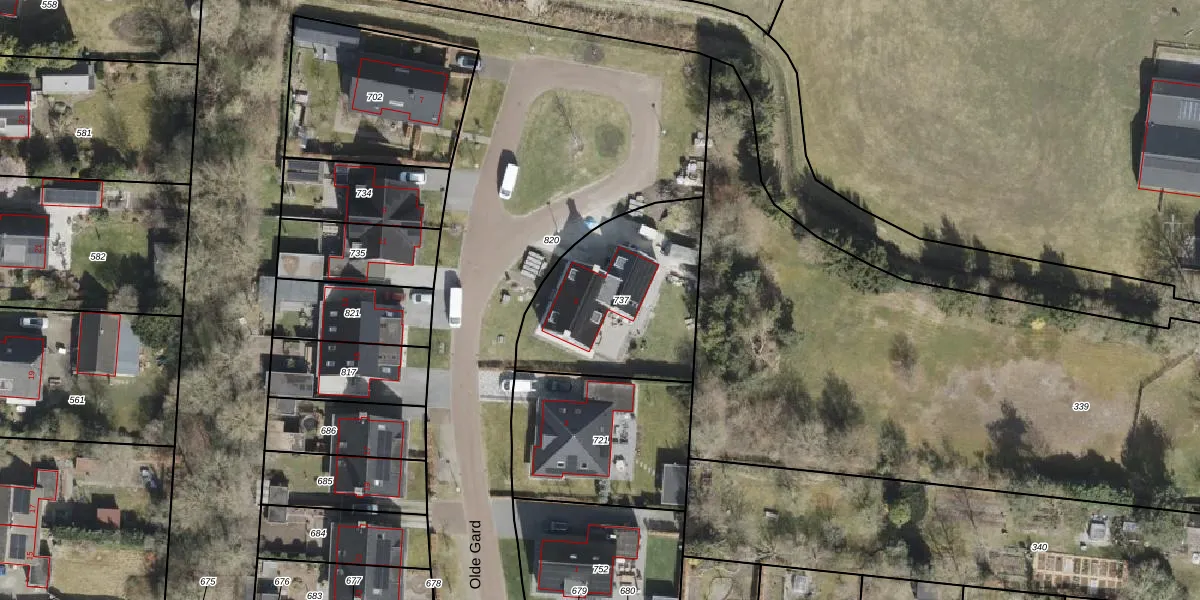 Het perceel waarop Olde Gard 5 staat heeft een oppervlakte van 715 m². Dit is een groot perceel. De perceeloppervlakte wordt geregistreerd door het Kadaster. Gedetailleerde informatie over de maten van dit perceel kunt u vinden in het rapport Kadastrale kaart met maatvoering van Olde Gard 5.