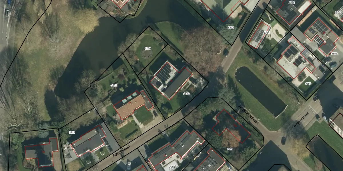 Gebruik de zoekbalk of klik op een perceel voor informatie over de adressen binnen dit perceel.