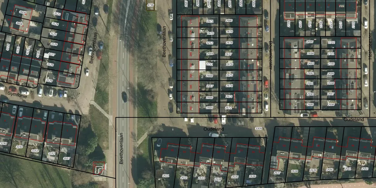 Het perceel waarop Beethovenlaan 288 staat heeft een oppervlakte van 129 m². Dit is een middelgroot perceel. De perceeloppervlakte wordt geregistreerd door het Kadaster. Gedetailleerde informatie over de maten van dit perceel kunt u vinden in het rapport Kadastrale kaart met maatvoering van Beethovenlaan 288.