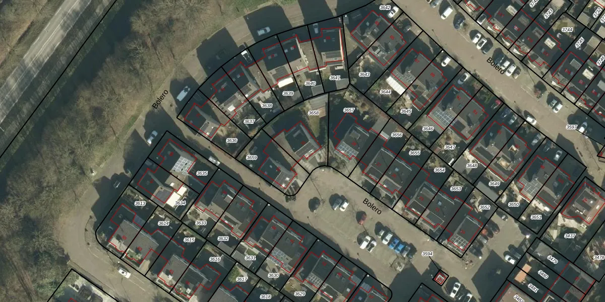 Het perceel waarop Bolero 31 staat heeft een oppervlakte van 360 m². Dit is een groot perceel. De perceeloppervlakte wordt geregistreerd door het Kadaster. Gedetailleerde informatie over de maten van dit perceel kunt u vinden in het rapport Kadastrale kaart met maatvoering van Bolero 31.