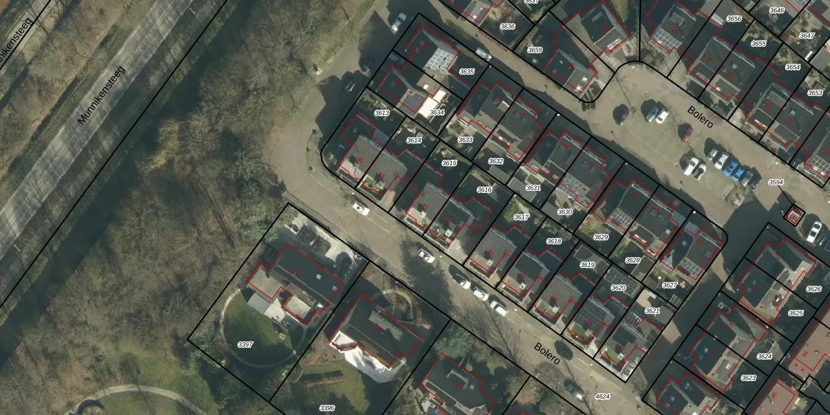 Het perceel waarop Bolero 61 staat heeft een oppervlakte van 216 m². Dit is een middelgroot perceel. De perceeloppervlakte wordt geregistreerd door het Kadaster. Gedetailleerde informatie over de maten van dit perceel kunt u vinden in het rapport Kadastrale kaart met maatvoering van Bolero 61.