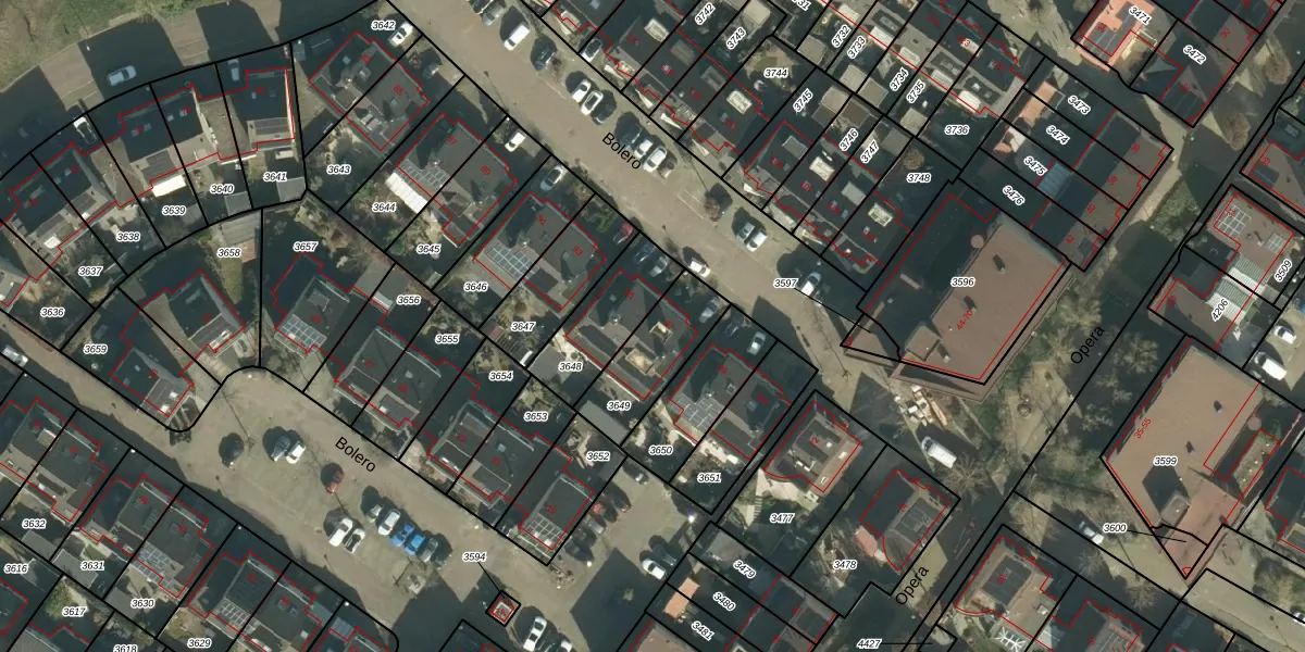 Het perceel waarop Bolero 97 staat heeft een oppervlakte van 253 m². Dit is een middelgroot perceel. De perceeloppervlakte wordt geregistreerd door het Kadaster. Gedetailleerde informatie over de maten van dit perceel kunt u vinden in het rapport Kadastrale kaart met maatvoering van Bolero 97.