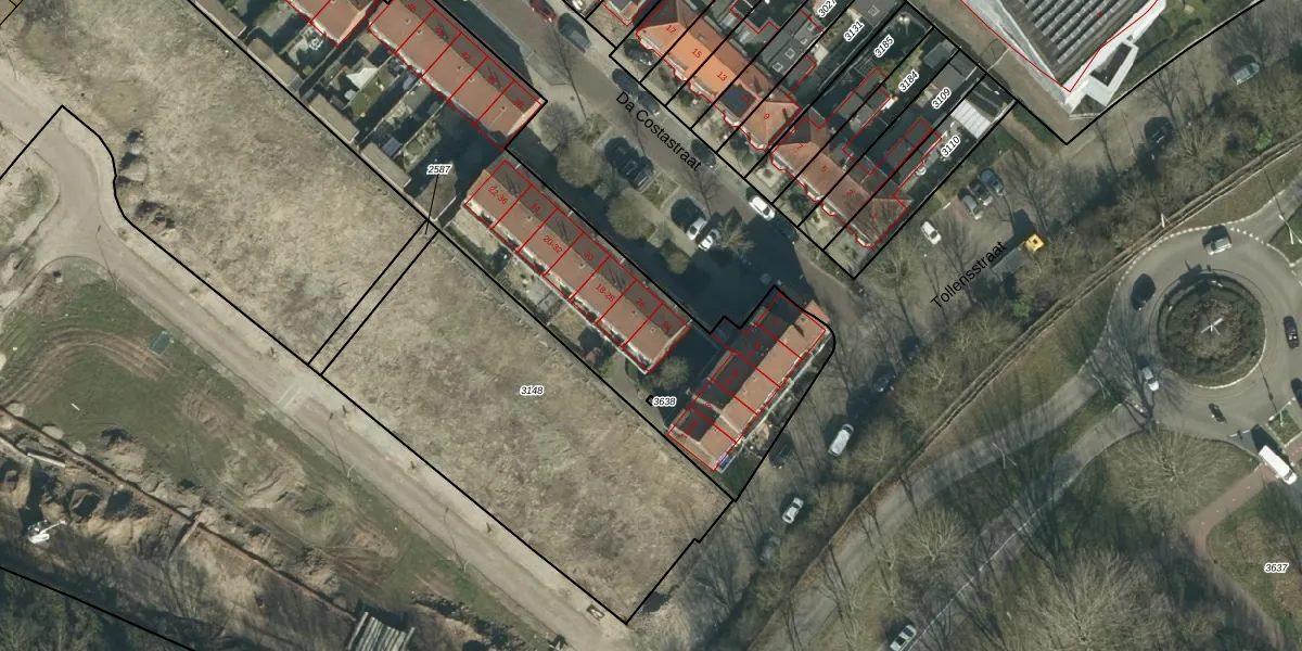 Het perceel waarop Da Costastraat 24 staat heeft een oppervlakte van 5110 m². Dit is een zeer groot perceel. De perceeloppervlakte wordt geregistreerd door het Kadaster. Gedetailleerde informatie over de maten van dit perceel kunt u vinden in het rapport Kadastrale kaart met maatvoering van Da Costastraat 24.