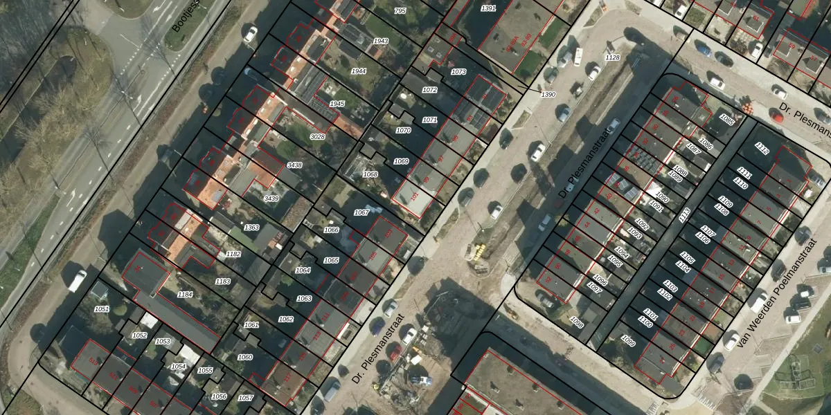 Gebruik de zoekbalk of klik op een perceel voor informatie over de adressen binnen dit perceel.