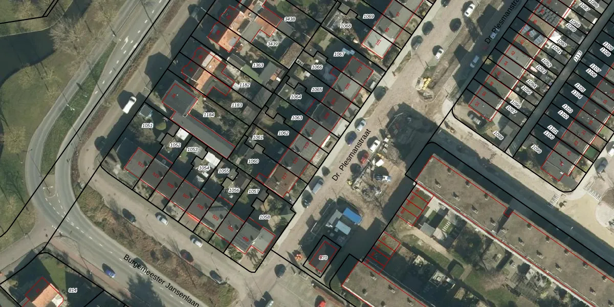 Gebruik de zoekbalk of klik op een perceel voor informatie over de adressen binnen dit perceel.