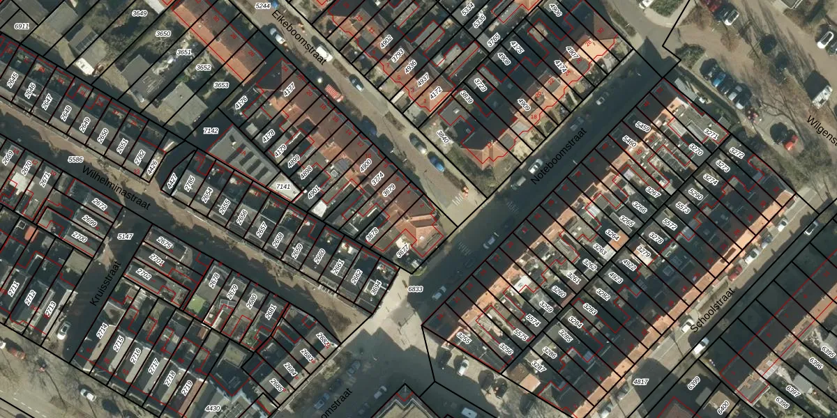 Gebruik de zoekbalk of klik op een perceel voor informatie over de adressen binnen dit perceel.