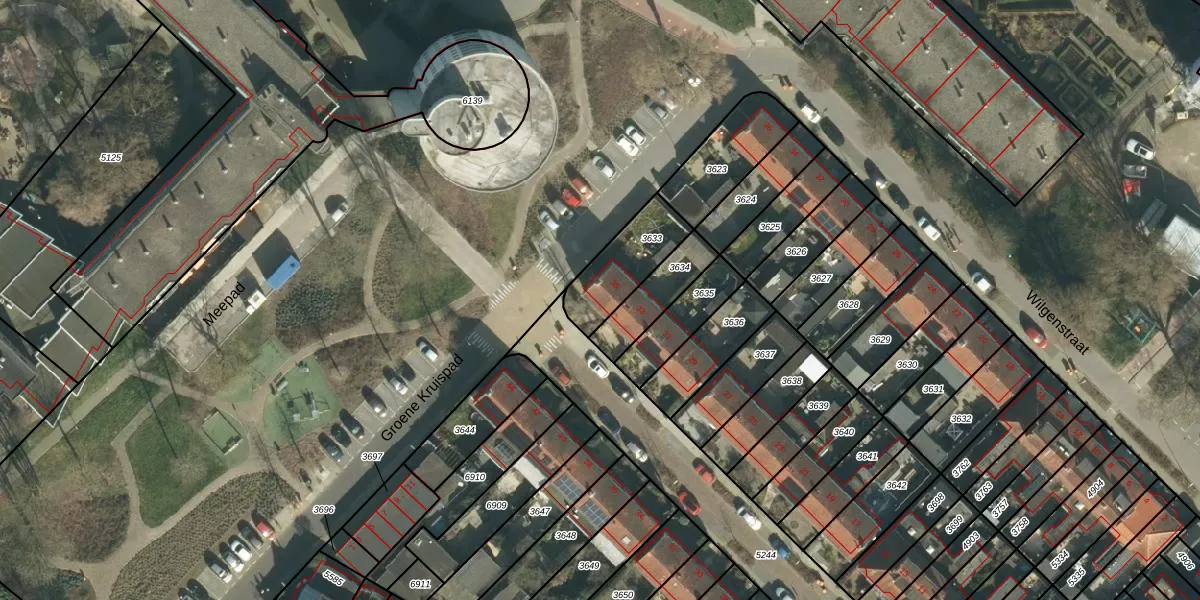 Gebruik de zoekbalk of klik op een perceel voor informatie over de adressen binnen dit perceel.