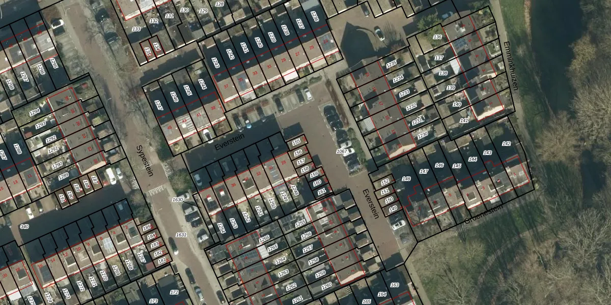 Het perceel waarop Everstein 24 staat heeft een oppervlakte van 19 m². Dit is een klein perceel. De perceeloppervlakte wordt geregistreerd door het Kadaster. Gedetailleerde informatie over de maten van dit perceel kunt u vinden in het rapport Kadastrale kaart met maatvoering van Everstein 24.