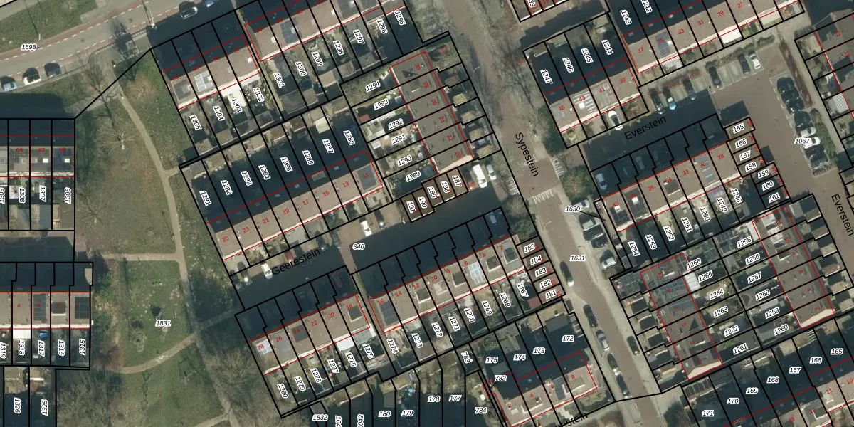 Gebruik de zoekbalk of klik op een perceel voor informatie over de adressen binnen dit perceel.