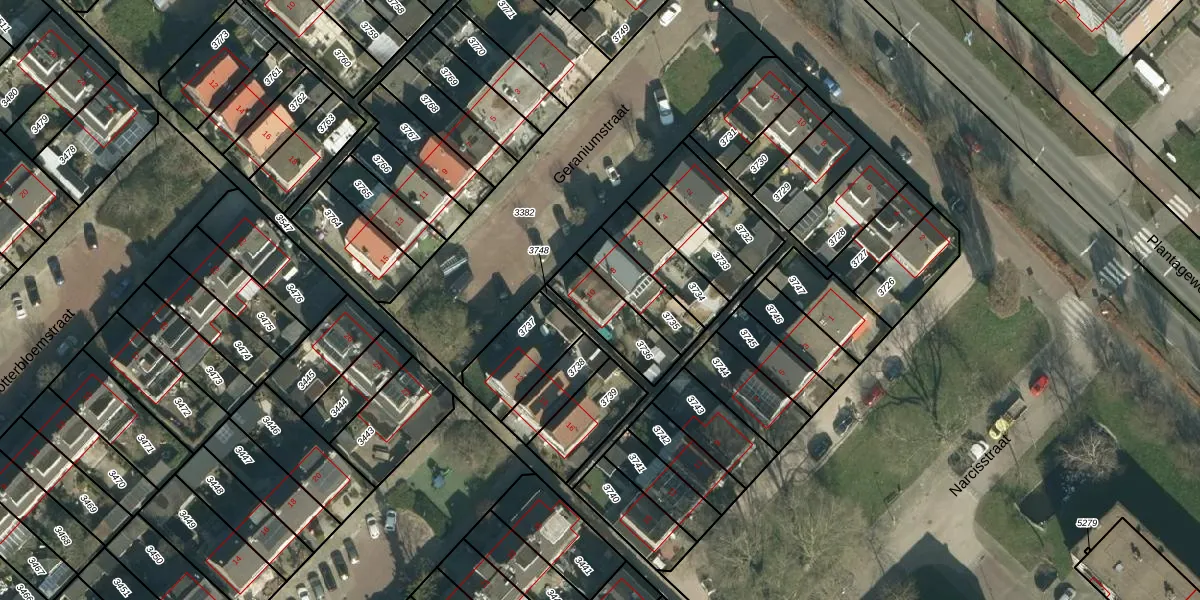 Het perceel waarop Geraniumstraat 10 staat heeft een oppervlakte van 176 m². Dit is een middelgroot perceel. De perceeloppervlakte wordt geregistreerd door het Kadaster. Gedetailleerde informatie over de maten van dit perceel kunt u vinden in het rapport Kadastrale kaart met maatvoering van Geraniumstraat 10.