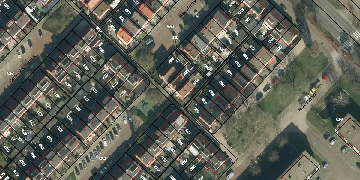 Het perceel waarop Geraniumstraat 16 staat heeft een oppervlakte van 171 m². Dit is een middelgroot perceel. De perceeloppervlakte wordt geregistreerd door het Kadaster. Gedetailleerde informatie over de maten van dit perceel kunt u vinden in het rapport Kadastrale kaart met maatvoering van Geraniumstraat 16.