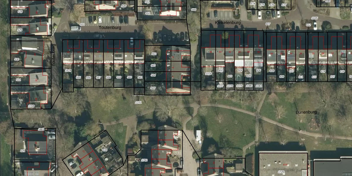 Gebruik de zoekbalk of klik op een perceel voor informatie over de adressen binnen dit perceel.