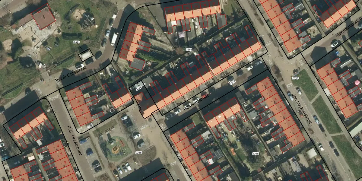 Het perceel waarop Helmersstraat 19 staat heeft een oppervlakte van 4460 m². Dit is een zeer groot perceel. De perceeloppervlakte wordt geregistreerd door het Kadaster. Gedetailleerde informatie over de maten van dit perceel kunt u vinden in het rapport Kadastrale kaart met maatvoering van Helmersstraat 19.