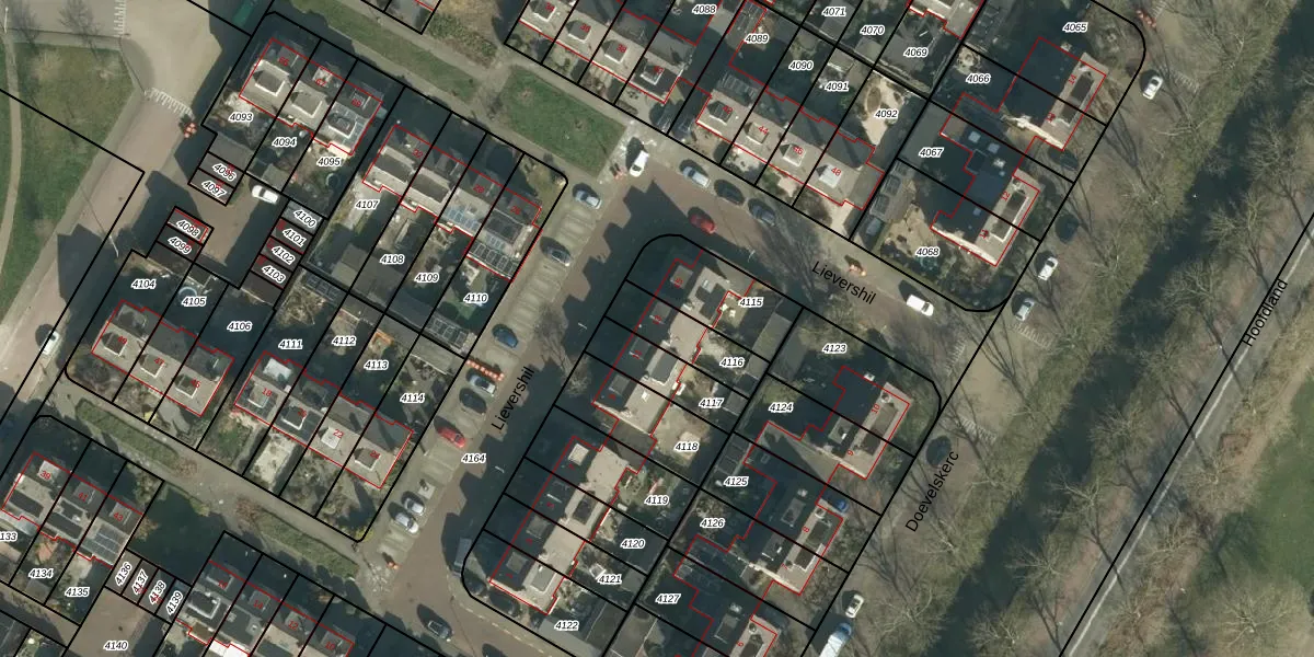 Gebruik de zoekbalk of klik op een perceel voor informatie over de adressen binnen dit perceel.