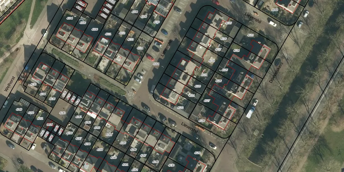 Gebruik de zoekbalk of klik op een perceel voor informatie over de adressen binnen dit perceel.