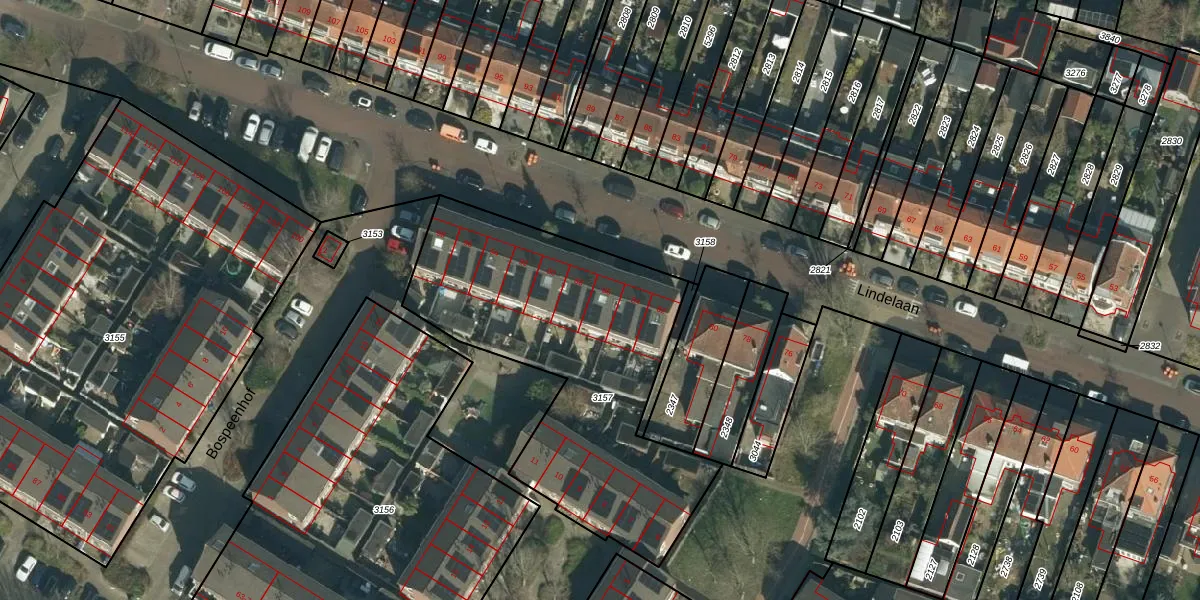 Het perceel waarop Lindelaan 86 staat heeft een oppervlakte van 1531 m². Dit is een zeer groot perceel. De perceeloppervlakte wordt geregistreerd door het Kadaster. Gedetailleerde informatie over de maten van dit perceel kunt u vinden in het rapport Kadastrale kaart met maatvoering van Lindelaan 86.