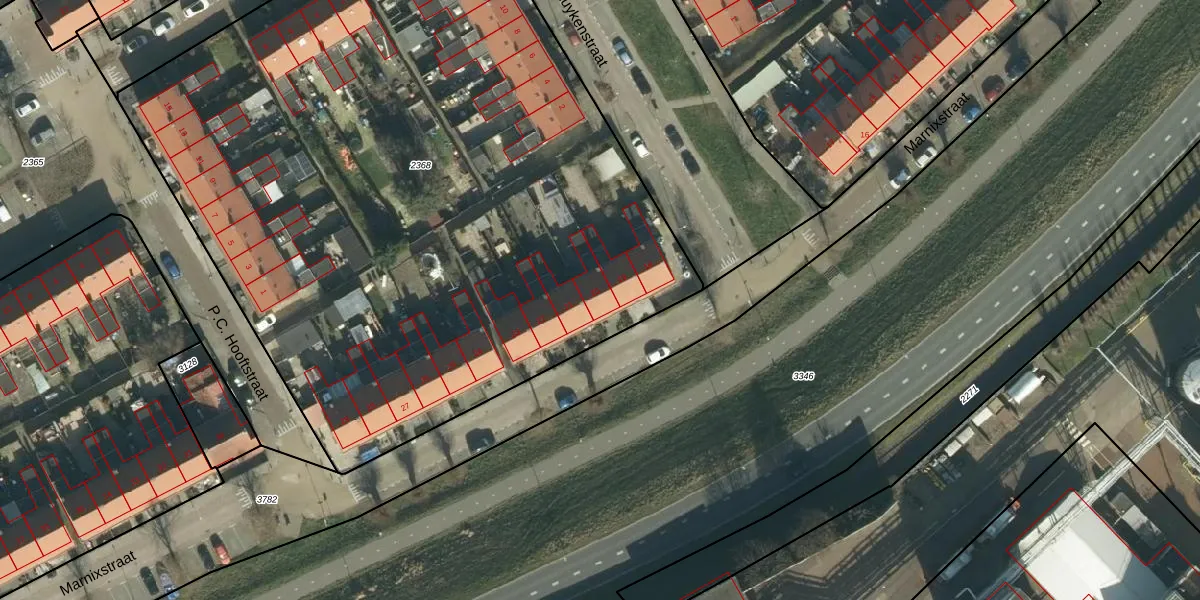 Het perceel waarop Marnixstraat 20 staat heeft een oppervlakte van 5215 m². Dit is een zeer groot perceel. De perceeloppervlakte wordt geregistreerd door het Kadaster. Gedetailleerde informatie over de maten van dit perceel kunt u vinden in het rapport Kadastrale kaart met maatvoering van Marnixstraat 20.