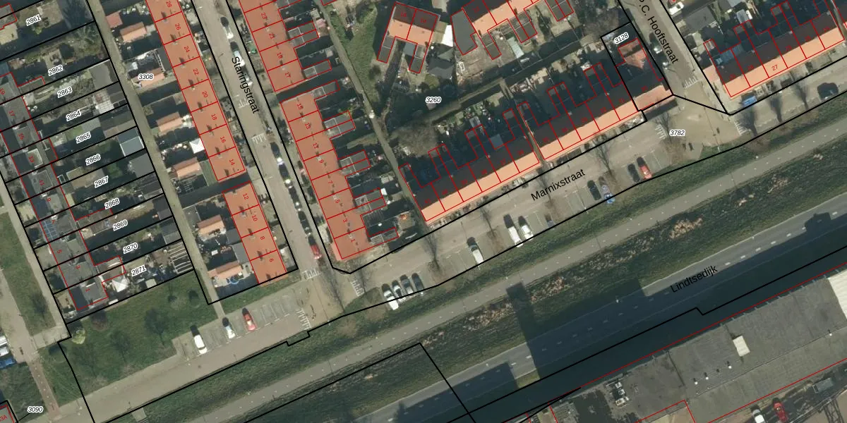 Het perceel waarop Marnixstraat 41 staat heeft een oppervlakte van 6168 m². Dit is een zeer groot perceel. De perceeloppervlakte wordt geregistreerd door het Kadaster. Gedetailleerde informatie over de maten van dit perceel kunt u vinden in het rapport Kadastrale kaart met maatvoering van Marnixstraat 41.