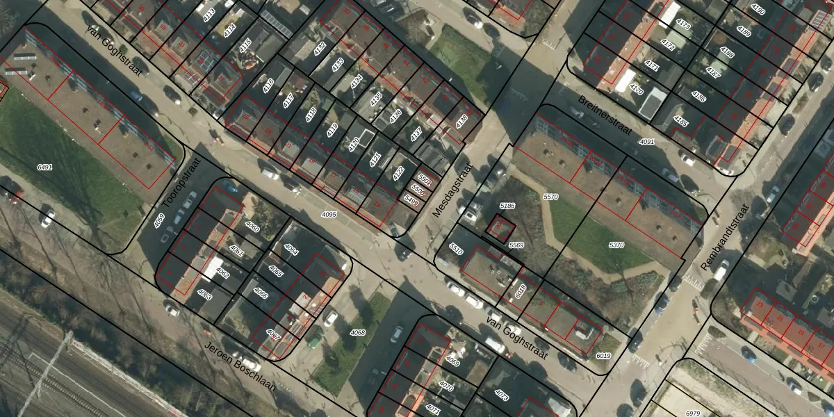 Het perceel waarop Mesdagstraat 17 staat heeft een oppervlakte van 18 m². Dit is een klein perceel. De perceeloppervlakte wordt geregistreerd door het Kadaster. Gedetailleerde informatie over de maten van dit perceel kunt u vinden in het rapport Kadastrale kaart met maatvoering van Mesdagstraat 17.