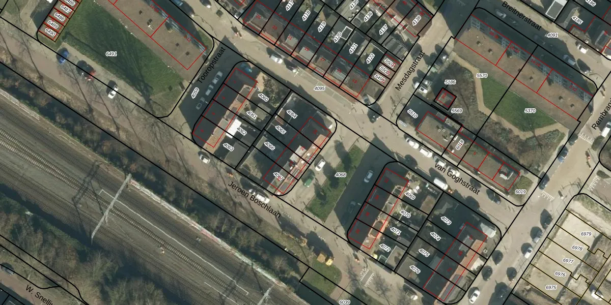 Het perceel waarop Mesdagstraat 21 staat heeft een oppervlakte van 121 m². Dit is een middelgroot perceel. De perceeloppervlakte wordt geregistreerd door het Kadaster. Gedetailleerde informatie over de maten van dit perceel kunt u vinden in het rapport Kadastrale kaart met maatvoering van Mesdagstraat 21.