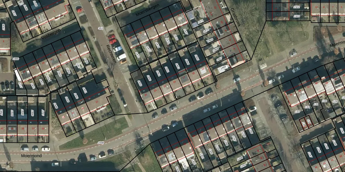Het perceel waarop Moermond 19 staat heeft een oppervlakte van 155 m². Dit is een middelgroot perceel. De perceeloppervlakte wordt geregistreerd door het Kadaster. Gedetailleerde informatie over de maten van dit perceel kunt u vinden in het rapport Kadastrale kaart met maatvoering van Moermond 19.