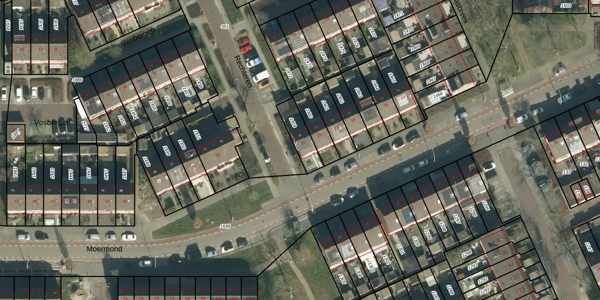 Het perceel waarop Moermond 25 staat heeft een oppervlakte van 157 m². Dit is een middelgroot perceel. De perceeloppervlakte wordt geregistreerd door het Kadaster. Gedetailleerde informatie over de maten van dit perceel kunt u vinden in het rapport Kadastrale kaart met maatvoering van Moermond 25.