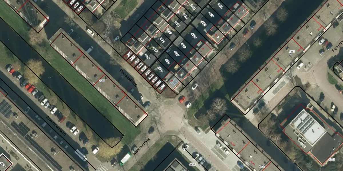 Het perceel waarop Narcisstraat 39 staat heeft een oppervlakte van 152 m². Dit is een middelgroot perceel. De perceeloppervlakte wordt geregistreerd door het Kadaster. Gedetailleerde informatie over de maten van dit perceel kunt u vinden in het rapport Kadastrale kaart met maatvoering van Narcisstraat 39.