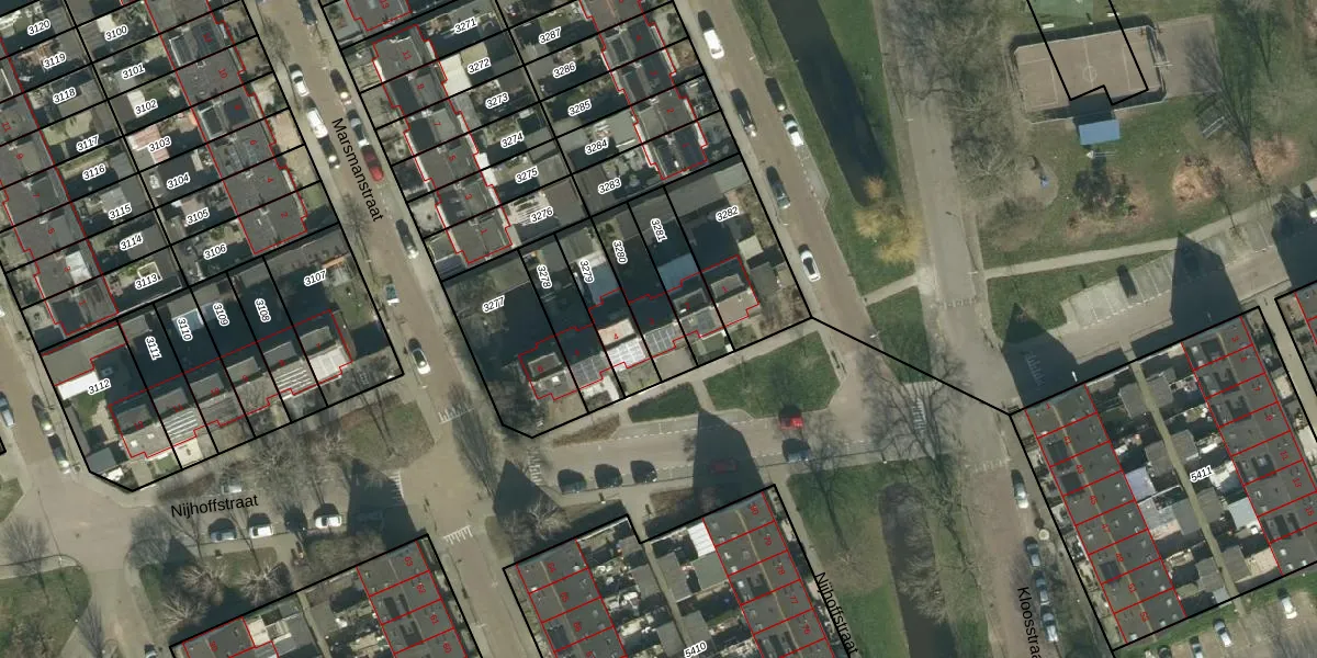 Het perceel waarop Nijhoffstraat 3 staat heeft een oppervlakte van 163 m². Dit is een middelgroot perceel. De perceeloppervlakte wordt geregistreerd door het Kadaster. Gedetailleerde informatie over de maten van dit perceel kunt u vinden in het rapport Kadastrale kaart met maatvoering van Nijhoffstraat 3.