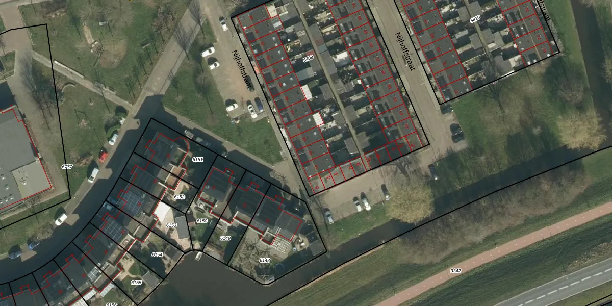 Nijhoffstraat 40 is gelegen op kadastraal perceel ZDT01D5409. Deze kadastrale aanduiding is uniek en wordt gebruikt door het Kadaster om eigendomsrechten en andere zakelijke rechten vast te leggen. Het perceel maakt onderdeel uit van de kadastrale gemeente Zwijndrecht.
