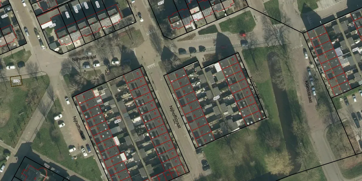 Het perceel waarop Nijhoffstraat 66 staat heeft een oppervlakte van 1764 m². Dit is een zeer groot perceel. De perceeloppervlakte wordt geregistreerd door het Kadaster. Gedetailleerde informatie over de maten van dit perceel kunt u vinden in het rapport Kadastrale kaart met maatvoering van Nijhoffstraat 66.