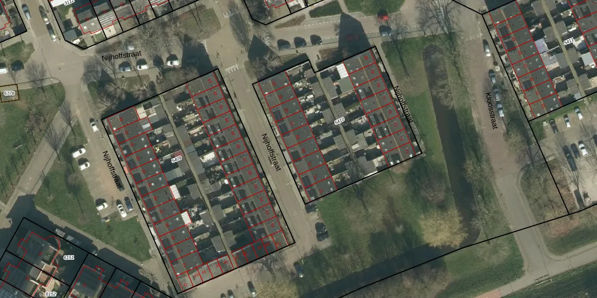 Het perceel waarop Nijhoffstraat 69 staat heeft een oppervlakte van 1764 m². Dit is een zeer groot perceel. De perceeloppervlakte wordt geregistreerd door het Kadaster. Gedetailleerde informatie over de maten van dit perceel kunt u vinden in het rapport Kadastrale kaart met maatvoering van Nijhoffstraat 69.