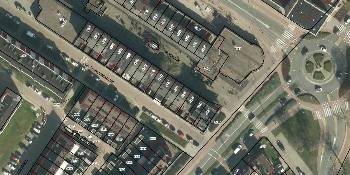 Het perceel waarop Passage 10 staat heeft een oppervlakte van 88 m². Dit is een klein perceel. De perceeloppervlakte wordt geregistreerd door het Kadaster. Gedetailleerde informatie over de maten van dit perceel kunt u vinden in het rapport Kadastrale kaart met maatvoering van Passage 10.