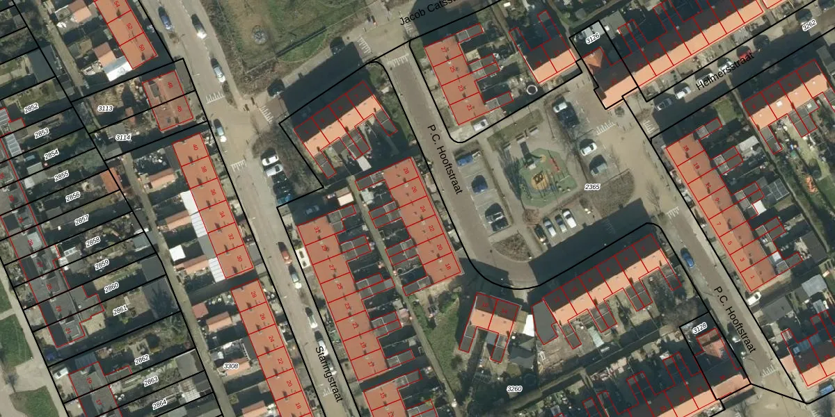 Het perceel waarop P.C. Hooftstraat 24 staat heeft een oppervlakte van 6168 m². Dit is een zeer groot perceel. De perceeloppervlakte wordt geregistreerd door het Kadaster. Gedetailleerde informatie over de maten van dit perceel kunt u vinden in het rapport Kadastrale kaart met maatvoering van P.C. Hooftstraat 24.