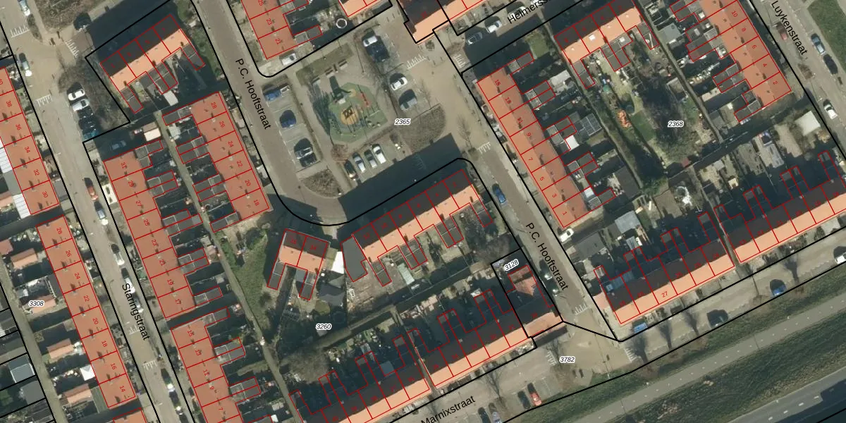 Het perceel waarop P.C. Hooftstraat 6 staat heeft een oppervlakte van 6168 m². Dit is een zeer groot perceel. De perceeloppervlakte wordt geregistreerd door het Kadaster. Gedetailleerde informatie over de maten van dit perceel kunt u vinden in het rapport Kadastrale kaart met maatvoering van P.C. Hooftstraat 6.
