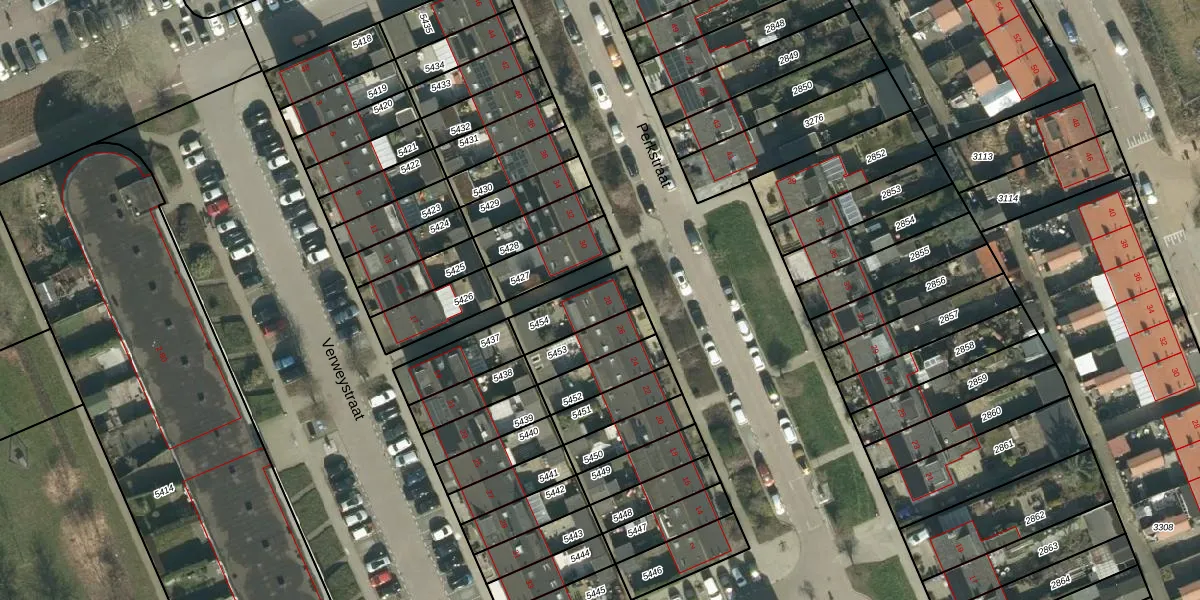 Gebruik de zoekbalk of klik op een perceel voor informatie over de adressen binnen dit perceel.