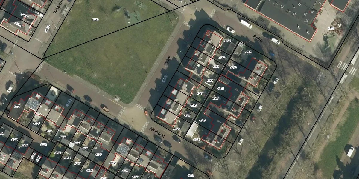 Gebruik de zoekbalk of klik op een perceel voor informatie over de adressen binnen dit perceel.