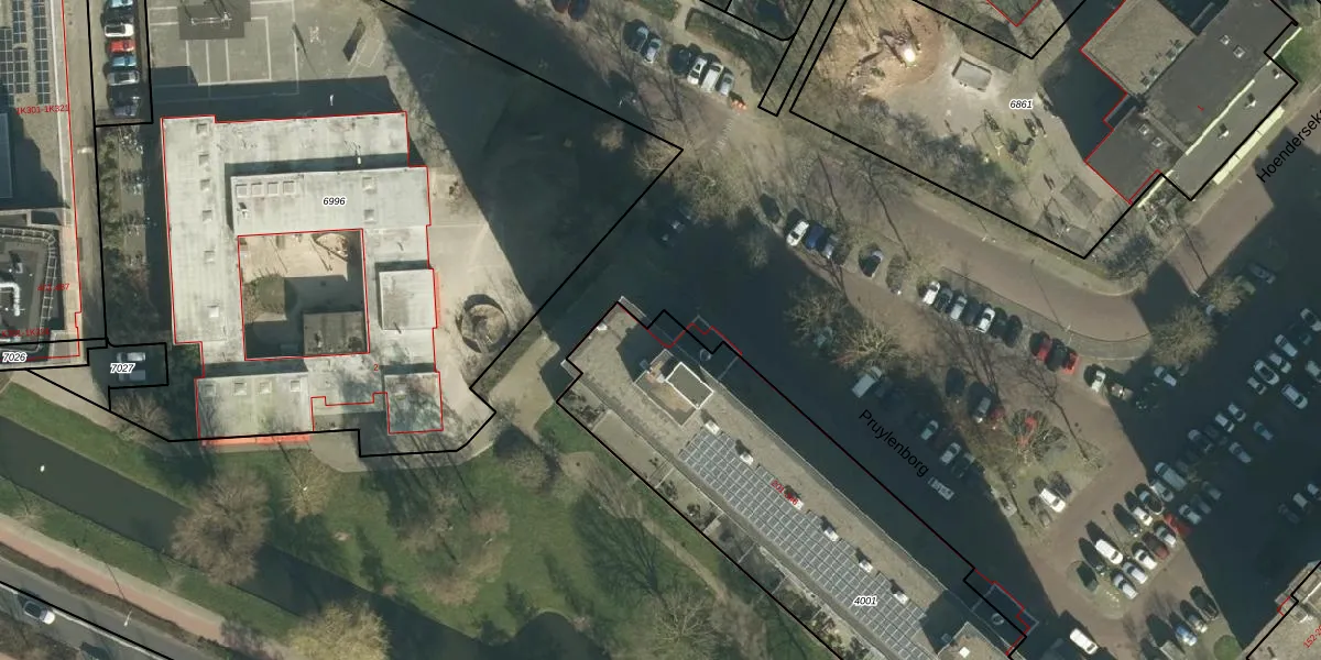Het perceel waarop Pruylenborg 211 staat heeft een oppervlakte van 2133 m². Dit is een zeer groot perceel. De perceeloppervlakte wordt geregistreerd door het Kadaster. Gedetailleerde informatie over de maten van dit perceel kunt u vinden in het rapport Kadastrale kaart met maatvoering van Pruylenborg 211.