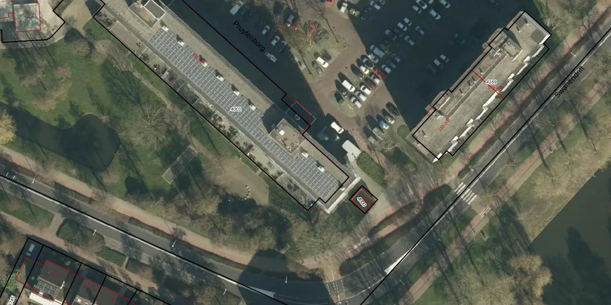 Het perceel waarop Pruylenborg 257 staat heeft een oppervlakte van 2133 m². Dit is een zeer groot perceel. De perceeloppervlakte wordt geregistreerd door het Kadaster. Gedetailleerde informatie over de maten van dit perceel kunt u vinden in het rapport Kadastrale kaart met maatvoering van Pruylenborg 257.